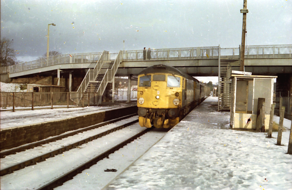 Happier days on the Far North, the severe weather saw the tractors confined to shed due boiler issues so stand in’s 26040 and 27054 arrive at Muir with the 0600 Wick/Thurso – Inverness on January 29th 1985