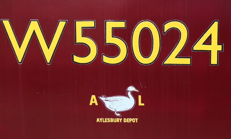 55024 the maroon “bubble” was a familiar site at Aylesbury working sandite/route learning turns from 1993-2013 on a regular basis. She entered service at Southall in Nov 60 with early 70s spells at Canton and Laira before becoming an OOC/Reading based regular from 1980-1993. She was converted to a Sandite/route learning car in Sep 93.
