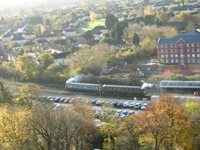 A bright Autumnal morning sees W55024 and blue sister with nice exhaust trails leaving Aylesbury for a sandite turn on the Risboro branch on October 3rd 2007