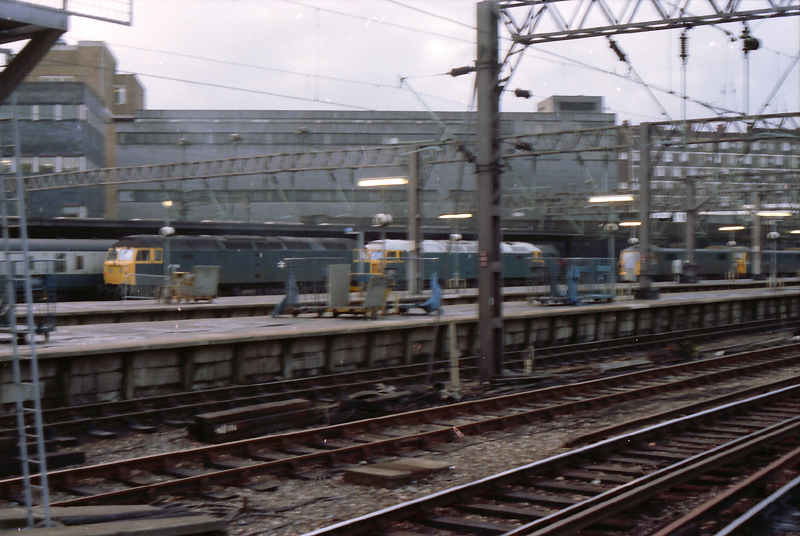 A more regular (at weekends) Tyseley set followed then with a loud warning blast on the horn 31257 dragging another 87 passed us on the Watford curve. That was all that was on the move all the way to Euston. The terminus itself was equally eerie with just a few DMU’s/310’s and 2 rakes of Cobbler stock in. 2 47’s were parked up on the stabling road where the “roarers” normally parked. Passengers and commuters milled around in the usual confusion that only serious farces bring. My DMU quickly left but then gen was obtained that some commuter trains would run plus a few Euston-Glasgow’s.